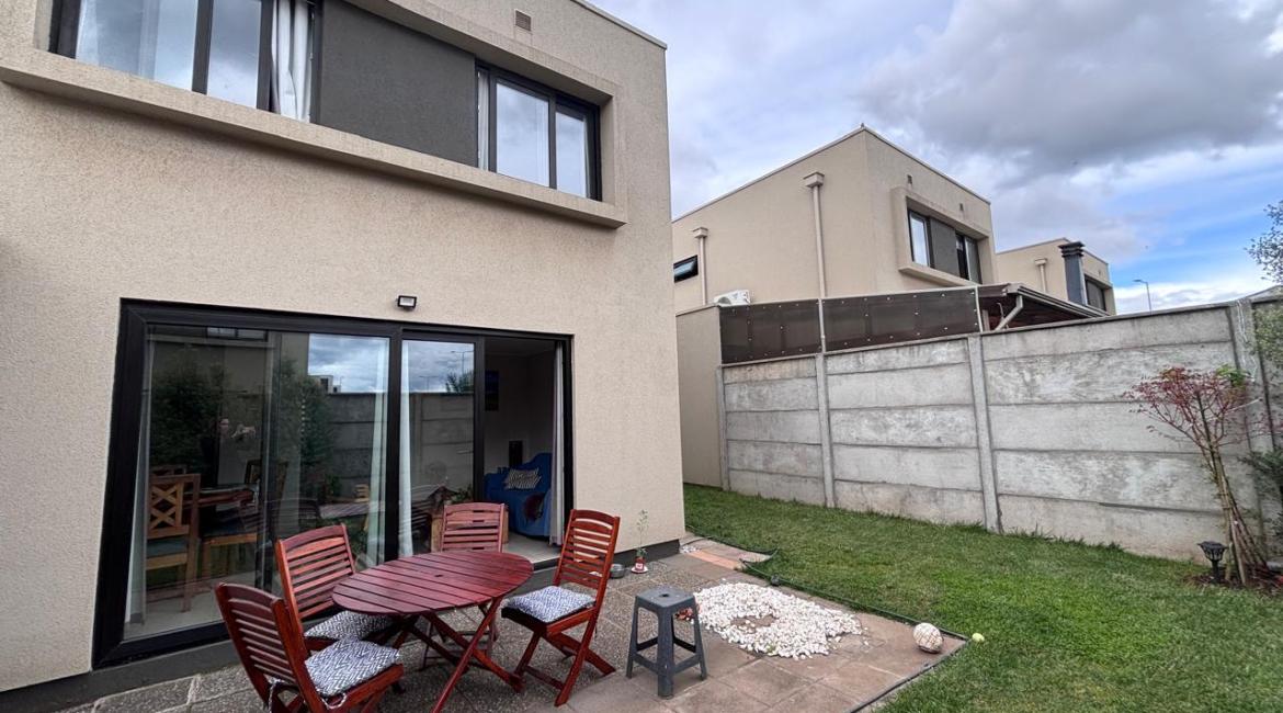 Arrendamos bonita y moderna casa en condominio ,Hall de acceso, 3 dormitorios, 1 en suite, 3 baños, la propiedad se encuentra emplazada en 205m. de terreno, la cocina esta equipada y amoblada con isla y cubierta silestone, logia, sala de estar, la casa cuenta con calefacción central a gas por radiadores, además de un equipo de aire acondicionado ubicado en la escalera, ventanas termopanel de PVC, modernos espacios y diseño. El patio cuenta con riego automático tecnificado y una bodega, el condominio cuenta con seguridad 24 hrs, jardines en frontis, lindas areas verdes, salón de eventos ,sala de juegos, zona de juegos infantiles exterior, zona de deportes Babyfutbol, basket, tenis fronton, zona pet mascotas. La casa tiene una excelente ubicación cercana a supermercado Lider, centros comerciales, Colegio George Chaytor. Necesitas mas Información? Contáctanos y agenda una visita GASTOS COMUNES INCLUIDOS EN EL VALOR DEL ARRIENDO!! +56977643189 +569 42639794 +569 91393081