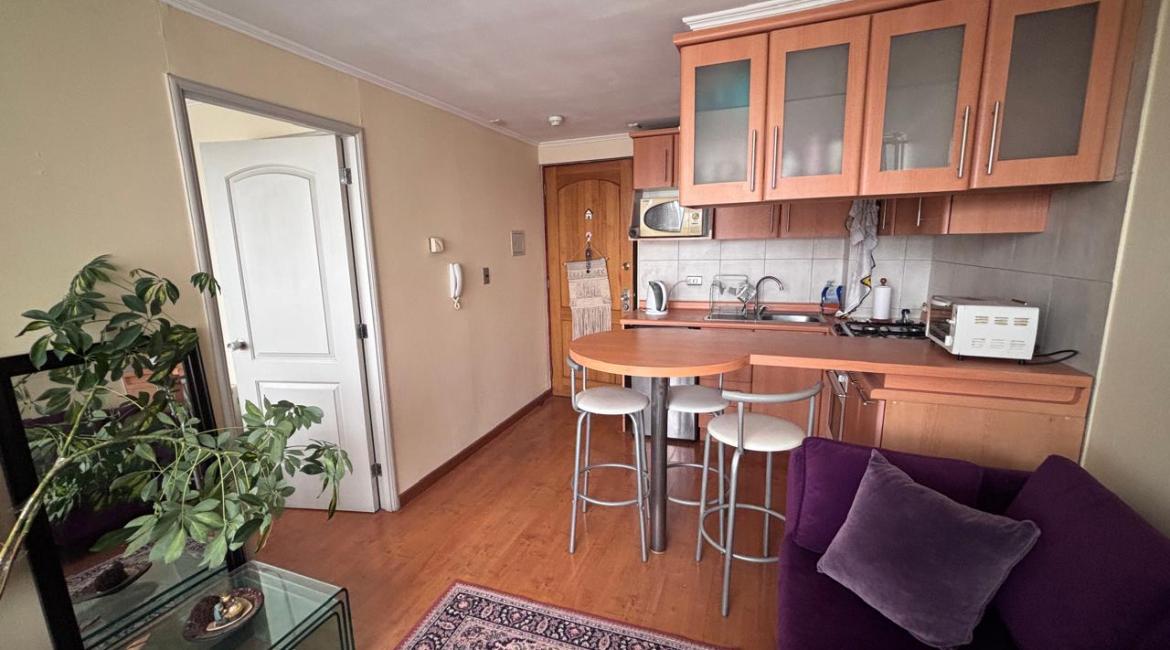 Arrendamos lindo y luminoso departamento amoblado 1 dormitorio con gastos comunes incluidos a pasos de Av. Alemania Temuco, con estacionamiento, cocina amoblada y equipada con encimera, horno, campana, edificio. Condominio cuenta con Quincho y conserjería 24/7, cercano a casino Dreams, centros comerciales, Portal Temuco, clínica alemana, universidades, supermercados, buena locomoción. Necesitas más información? Contáctanos y agenda una visita +569 77643189