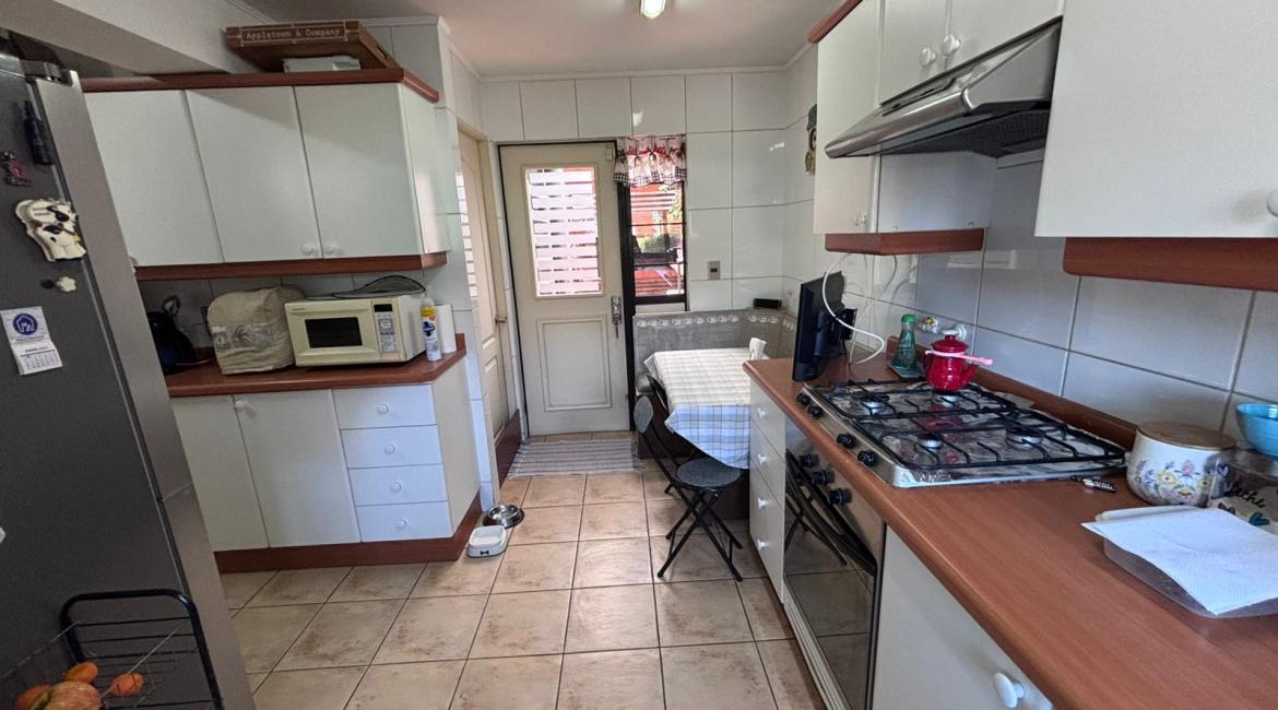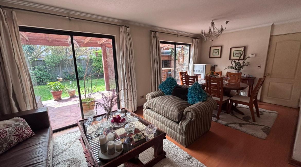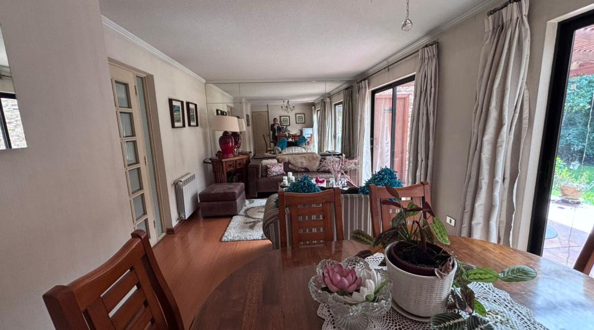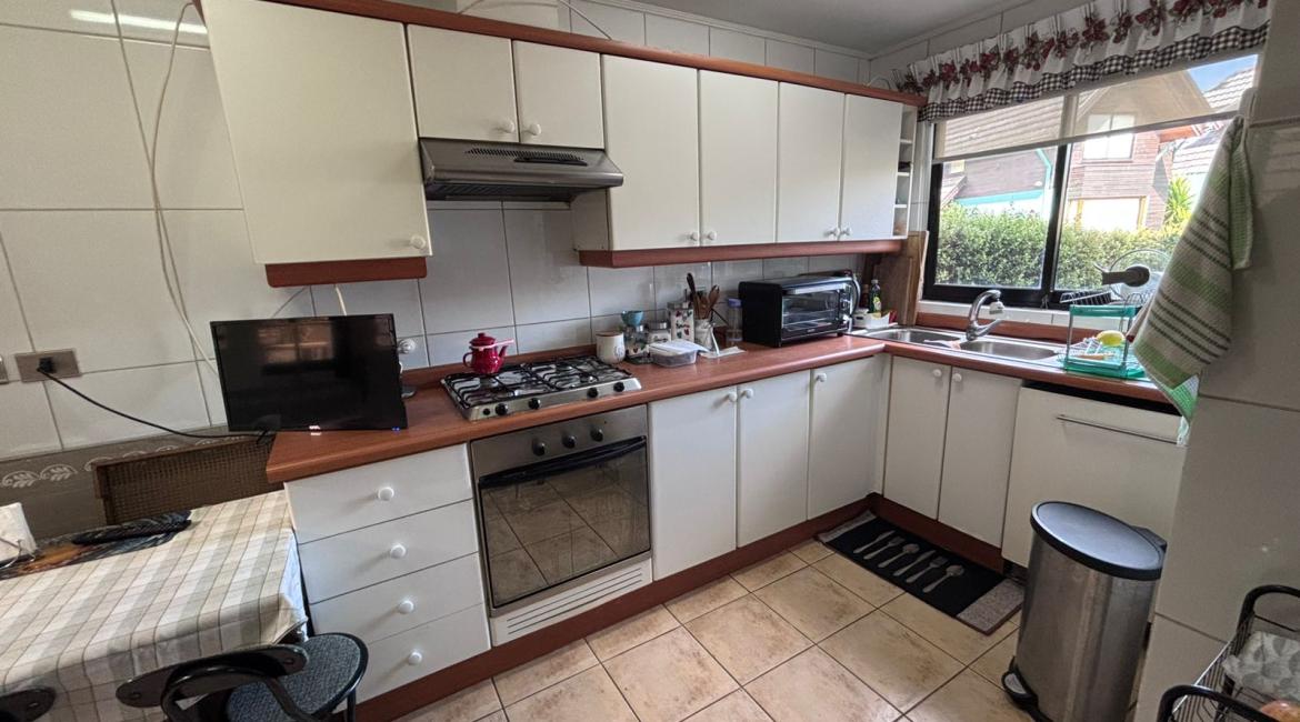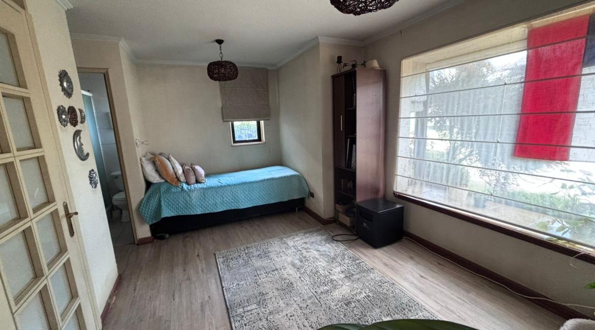 Vendemos maravillosa y luminosa casa de 4 amplios dormitorios, 2 de ellos en suite, opcionalmente el cuarto dormitorio puede utilizarse como sala de estar, 4 baños , amplio living comedor, cocina con comedor de diario. bonito patio con hermosos arboles ornaméntales y terraza techada con barbuecue y horno. La casa se calefacciona con eficiente Termo estufa a pellet conectada a radiadores ubicados en toda la casa., ventanas termopanel, amplia bodega en buhardilla habilitada con acceso por escalera retráctil, estacionamiento techado, amplia bodega. Excelente propiedad con muy buena orientación lo que la hace muy luminosa. La casa esta ubicada en tranquilo condominio donde se limita su acceso durante la noche y fines de semana. La casa tiene una gran conectividad en el sector poniente de Temuco, cercana a supermercado Líder, centros comerciales, Clínica Red salud, colegio George Chaytor, entre otros. ¿ Necesitas más información ? Contáctanos y agenda una visita +569 42639794 +569 77643189 +569 42639794