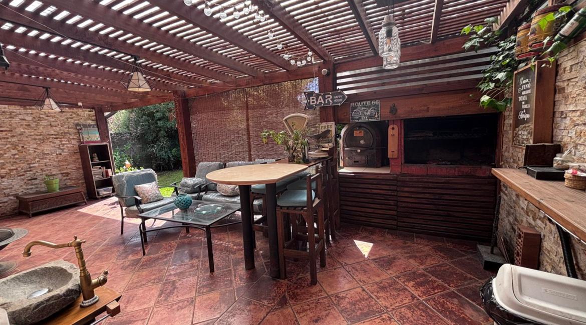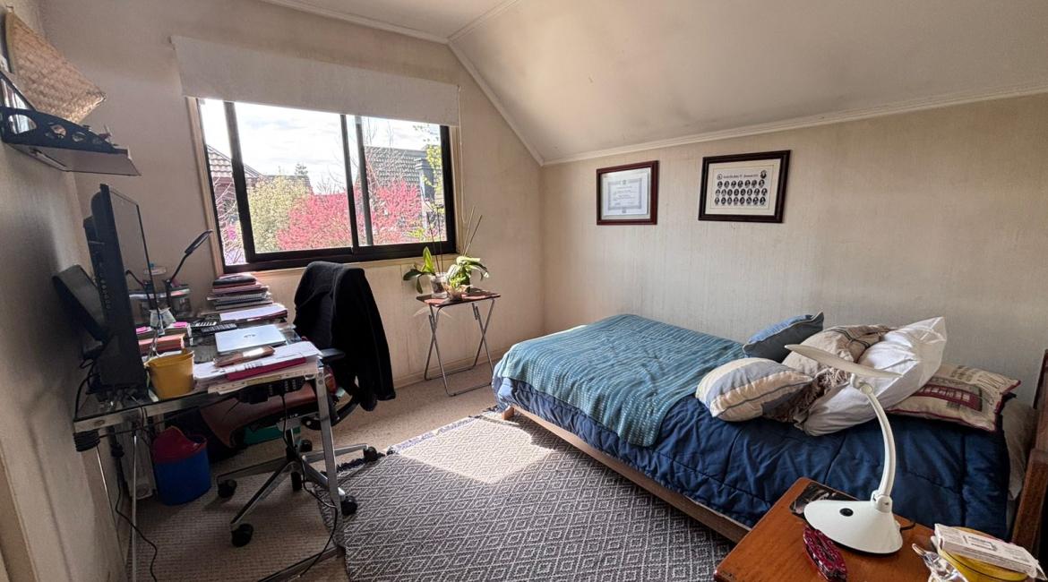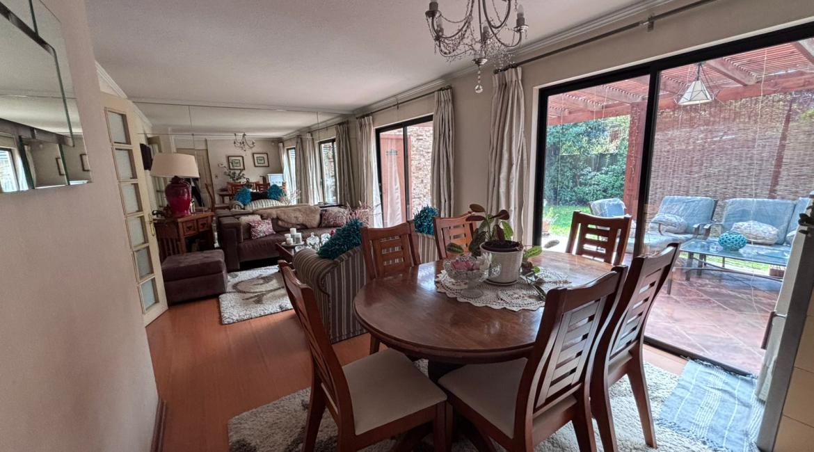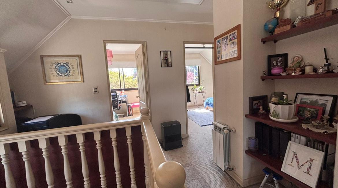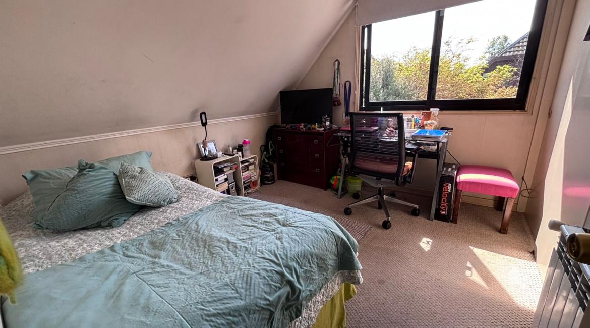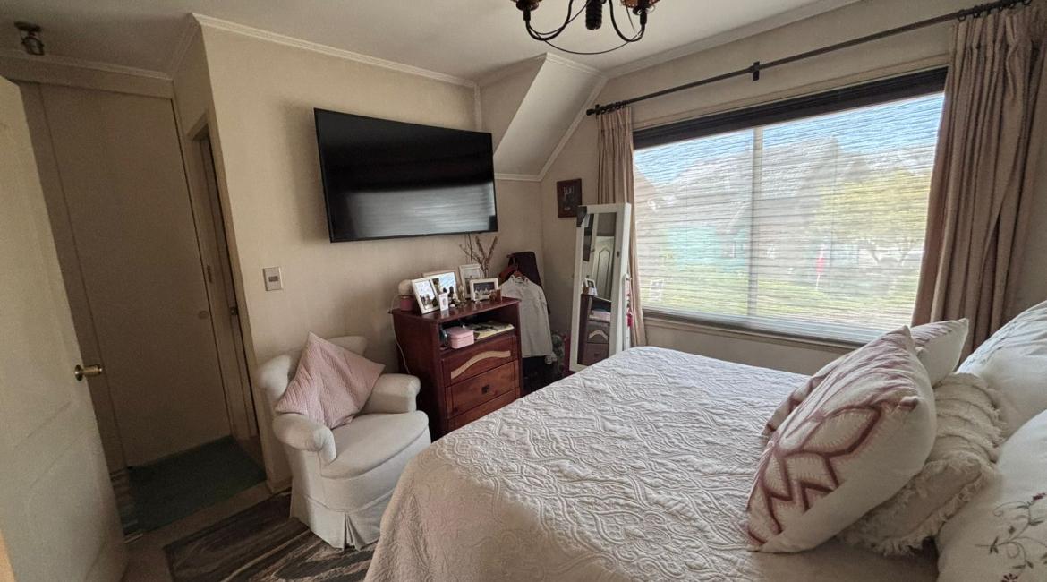 Vendemos maravillosa y luminosa casa de 4 amplios dormitorios, 2 de ellos en suite, opcionalmente el cuarto dormitorio puede utilizarse como sala de estar, 4 baños , amplio living comedor, cocina con comedor de diario. bonito patio con hermosos arboles ornaméntales y terraza techada con barbuecue y horno. La casa se calefacciona con eficiente Termo estufa a pellet conectada a radiadores ubicados en toda la casa., ventanas termopanel, amplia bodega en buhardilla habilitada con acceso por escalera retráctil, estacionamiento techado, amplia bodega. Excelente propiedad con muy buena orientación lo que la hace muy luminosa. La casa esta ubicada en tranquilo condominio donde se limita su acceso durante la noche y fines de semana. La casa tiene una gran conectividad en el sector poniente de Temuco, cercana a supermercado Líder, centros comerciales, Clínica Red salud, colegio George Chaytor, entre otros. ¿ Necesitas más información ? Contáctanos y agenda una visita +569 42639794 +569 77643189 +569 42639794